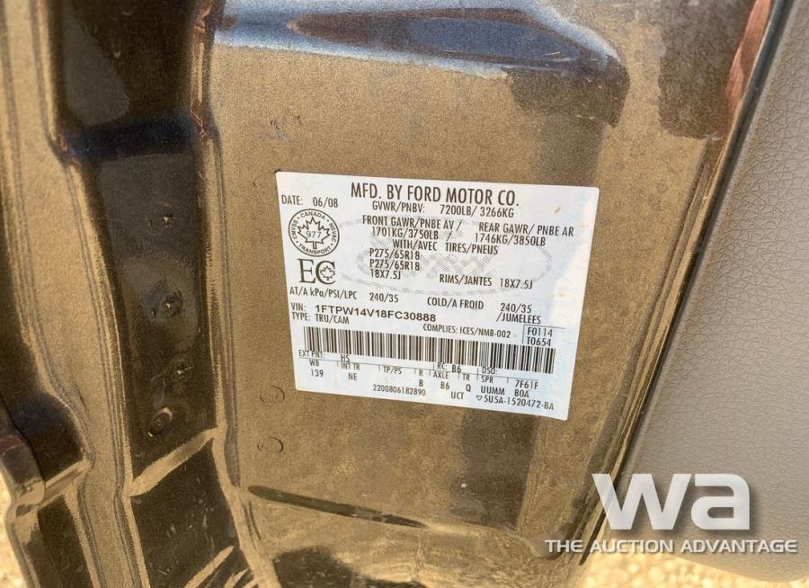 ODOMETER: 204,588 KM, GAS, AUTOMATIC, 4WD, BROWN, SHORT BOX VIN:1FTPW14V18FC30888, *AB REGISTERED