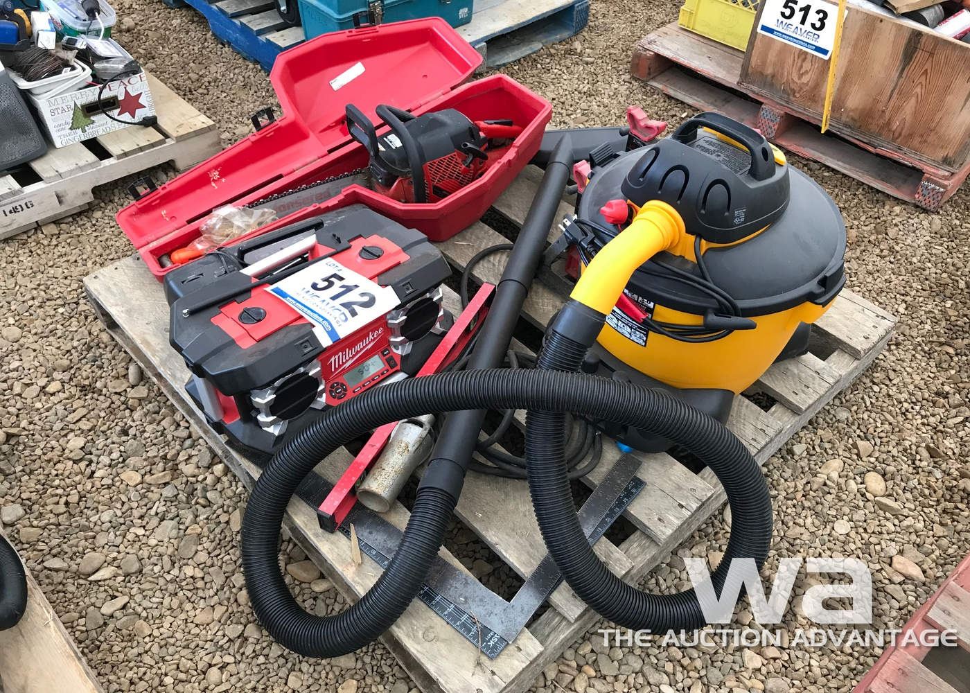 (2) JACK STANDS, CHAIN SAW, MILWAUKEE RADIO
